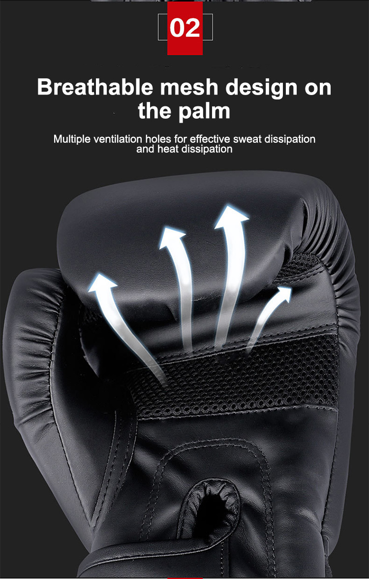 These boxing gloves are padded with high density foam to absorb impact and reduce strain on the hands and knuckles during training. The outer layer is made of durable PU leather, offering long-lasting performance for frequent use. Inside, the breathable lining ensures comfort and dryness even during extended workouts. Perfect for boxing drills, cardio sessions, or general fitness training.