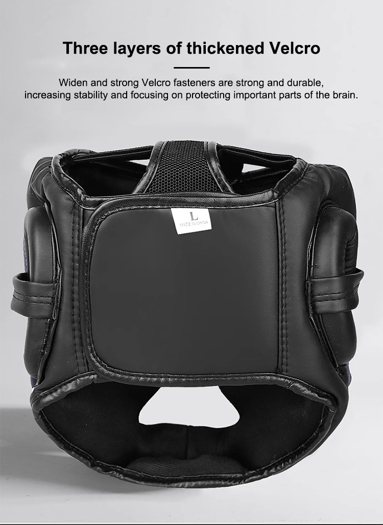 This face guard head guard is built for combat training, offering full coverage over the forehead, face, and chin to reduce the risk of impact injuries. It features high density foam padding for effective shock absorption, a durable PU leather exterior for long-lasting use, and a soft breathable lining to ensure comfort and stability. Ideal for boxing, MMA, and other striking disciplines.