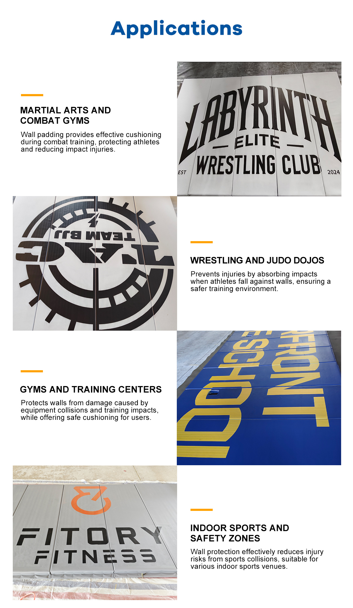 Durable wall padding for gyms fitness studios and training facilities Protects athletes from impact during workouts