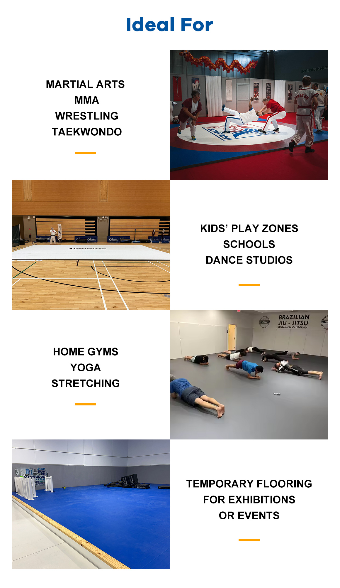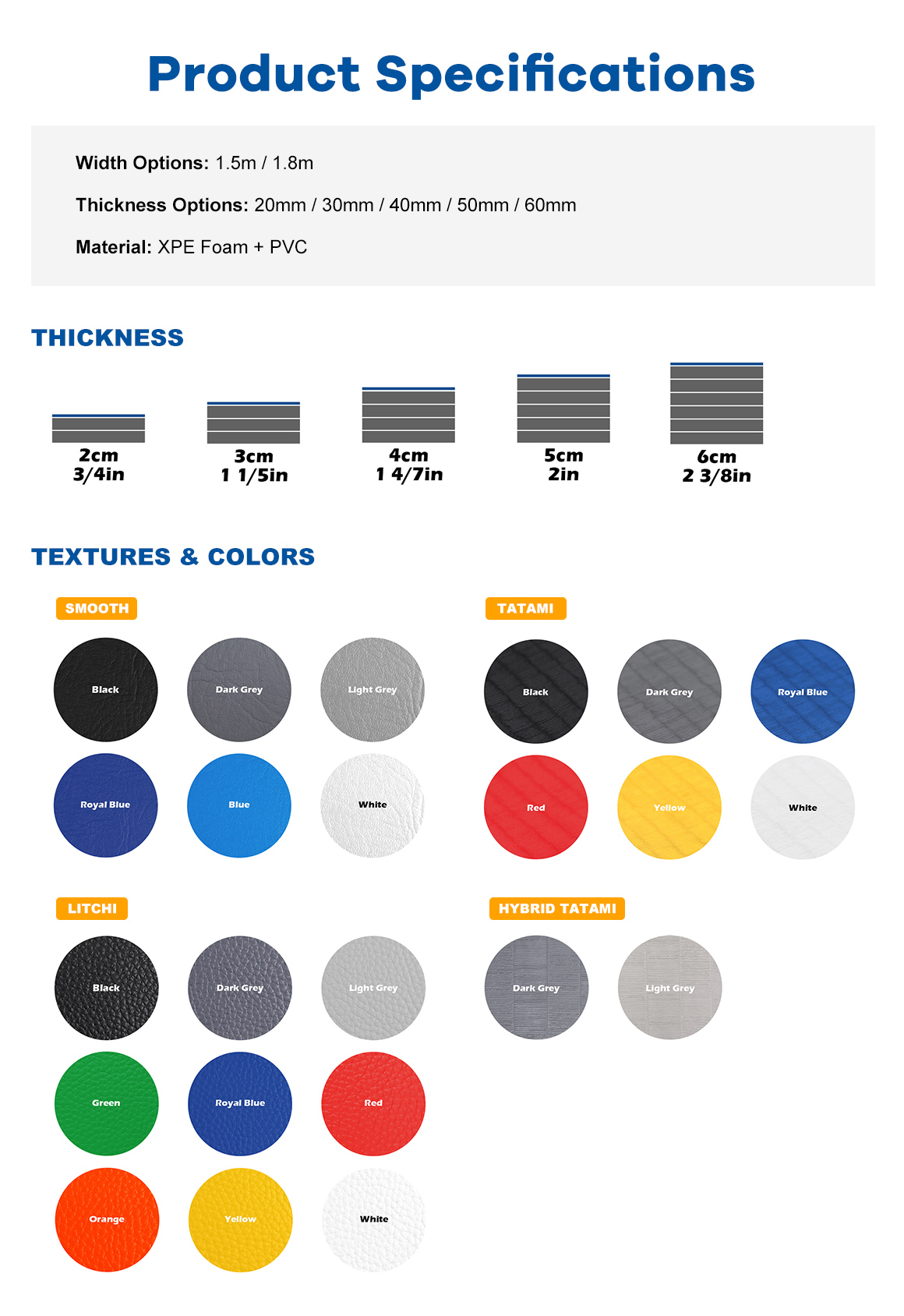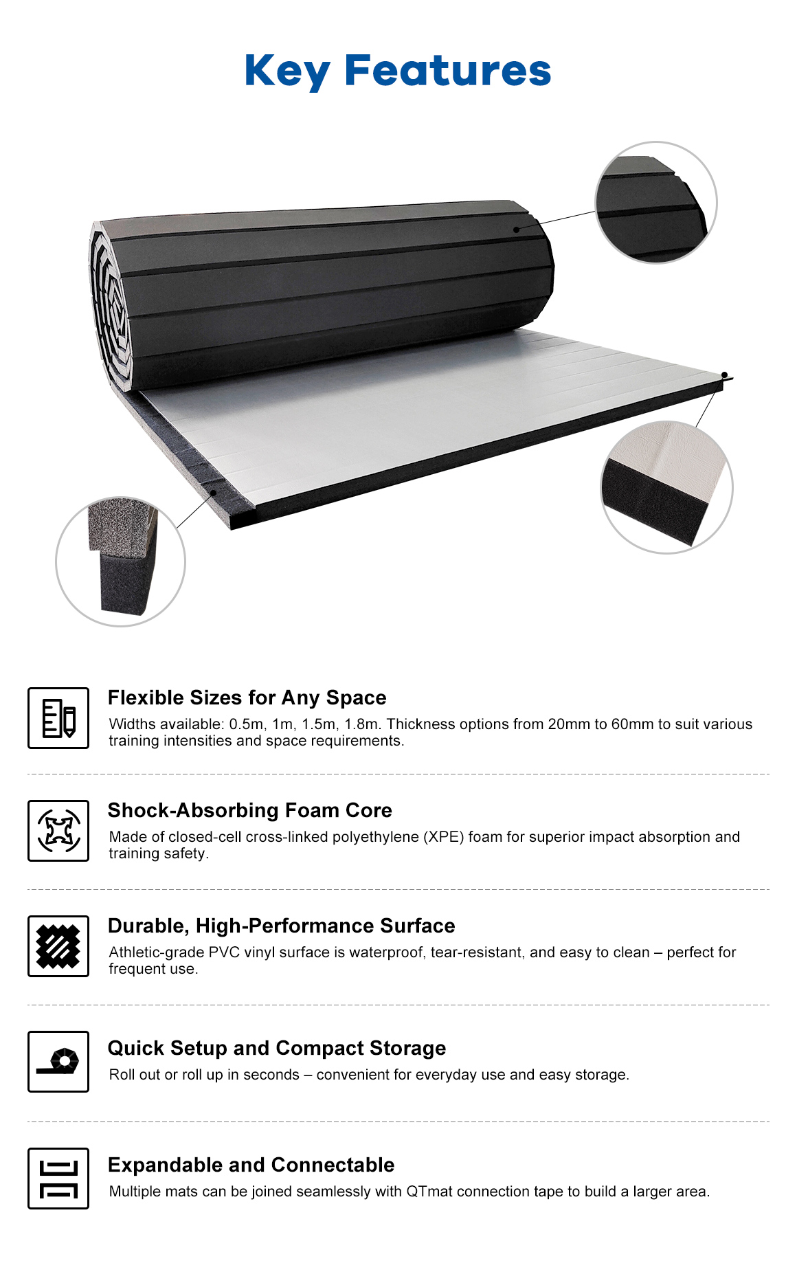 High-density gym flooring roll mats for MMA and BJJ, offering full floor protection and comfort